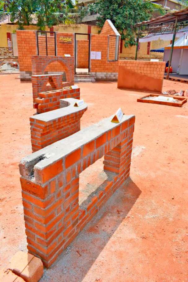 കോര്ത്തുവയ്ക്കാവുന്ന (ഇന്റര്ലോക്കിംഗ്) ഇഷ്ടിക 1750 എണ്ണം മതി. ഇഷ്ടികക്കെട്ടുകള് തന്നെ പല തരം ഇഷ്ടികകള് ഉപയോഗിച്ച് പല രീതിയില് എങ്ങനെ ചെയ്യണമെന്നും മേസ്തിരിമാര് പറഞ്ഞുതരും. ചുവരിന്റെ കെട്ടുമാത്രമല്ല, ലിന്റില്, ഇരിപ്പിടം, ആര്ച്ചുകള് തുടങ്ങിയവയെല്ലാം ഇതില് പെടും. തറ, റൂഫ്, ജനല്, വാതില് എന്നിവയ്ക്കെല്ലാം പരീക്ഷിക്കാവുന്ന പല തരം സാങ്കേതികവിദ്യകളെയും പരിചയപ്പെടാം.