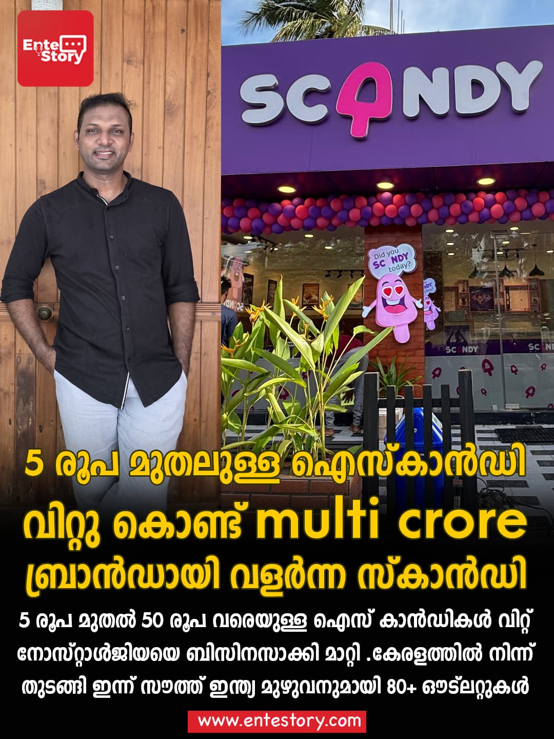 2018 ൽ അദ്ദേഹം തന്റെ കംഫർട്ട് സോൺ വിട്ട് ഒരു ധൈര്യമായ തീരുമാനം എടുത്തു.സ്വന്തമായി ഒരു ബിസിനസ്സ് സ്റ്റാർട്ട് ചെയ്യുക.അങ്ങനെ ഐസ്ക്രീം ഇൻഡസ്ട്രിയിലേക്ക്..2021 ൽ ഒരു പുതിയ ബിസിനസ്സ് ഐഡിയ മനസ്സിലേക്ക് വന്നു. ചെറുതും സാധാരണയുമായ ഒരു ആശയം ആയിരുന്നു അത് ..5 രൂപ മുതൽ ആരംഭിക്കുന്ന ഐസ് കാൻഡി.പക്ഷേ അതിൽ ഒരു വലിയ ബിസിനസ്സ് സാധ്യത ഉണ്ടായിരുന്നു.. “നോസ്റ്റാൾജിയ”. കുട്ടികാലത്തെ ice candy ന്യൂ ജെൻ പതിപ്പ്.അങ്ങനെ 2024 ൽ സ്കാൻഡി എന്ന ബ്രാൻഡ് സ്റ്റാർട്ട് ചെയ്തു.അത് ക്ലിക്ക് ആയി കഴിഞ്ഞ 2 വർഷം കൊണ്ട് കേരളത്തിന് പുറമെ തമിഴ്നാട്, കര്ണാടക, ഹൈദരാബാദ്, ആന്ധ്രപ്രദേശ് എന്നിവിടങ്ങളിലായി 80+ സ്റ്റോറുകളോടെ Scandy വളർന്നു കൊണ്ടിരിക്കുന്നു..വിൽക്കുന്നത് 5 രൂപ മുതലുള്ള ഐസ് സ്കാൻഡി ആണെങ്കിലും ഇന്നത് Multi-Crore ബ്രാൻഡ് ആണ്..യഥാർത്ഥ ഫ്രൂട്ട്സിന്റെ പൾപ്പ് കൊണ്ടാണ് സ്കാൻഡിയുടെ ഐസ് സ്കാൻഡികൾ നിർമ്മിക്കുന്നത്.