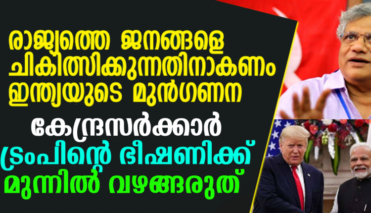 രാജ്യത്തെ ജനങ്ങളെ ചികിത്സിക്കുന്നതിനാകണം മുൻഗണന ,ട്രംപിന്റെ ഭീഷണിക്ക് മുന്നിൽ വഴങ്ങരുത് – സീതാറാം യെച്ചൂരി