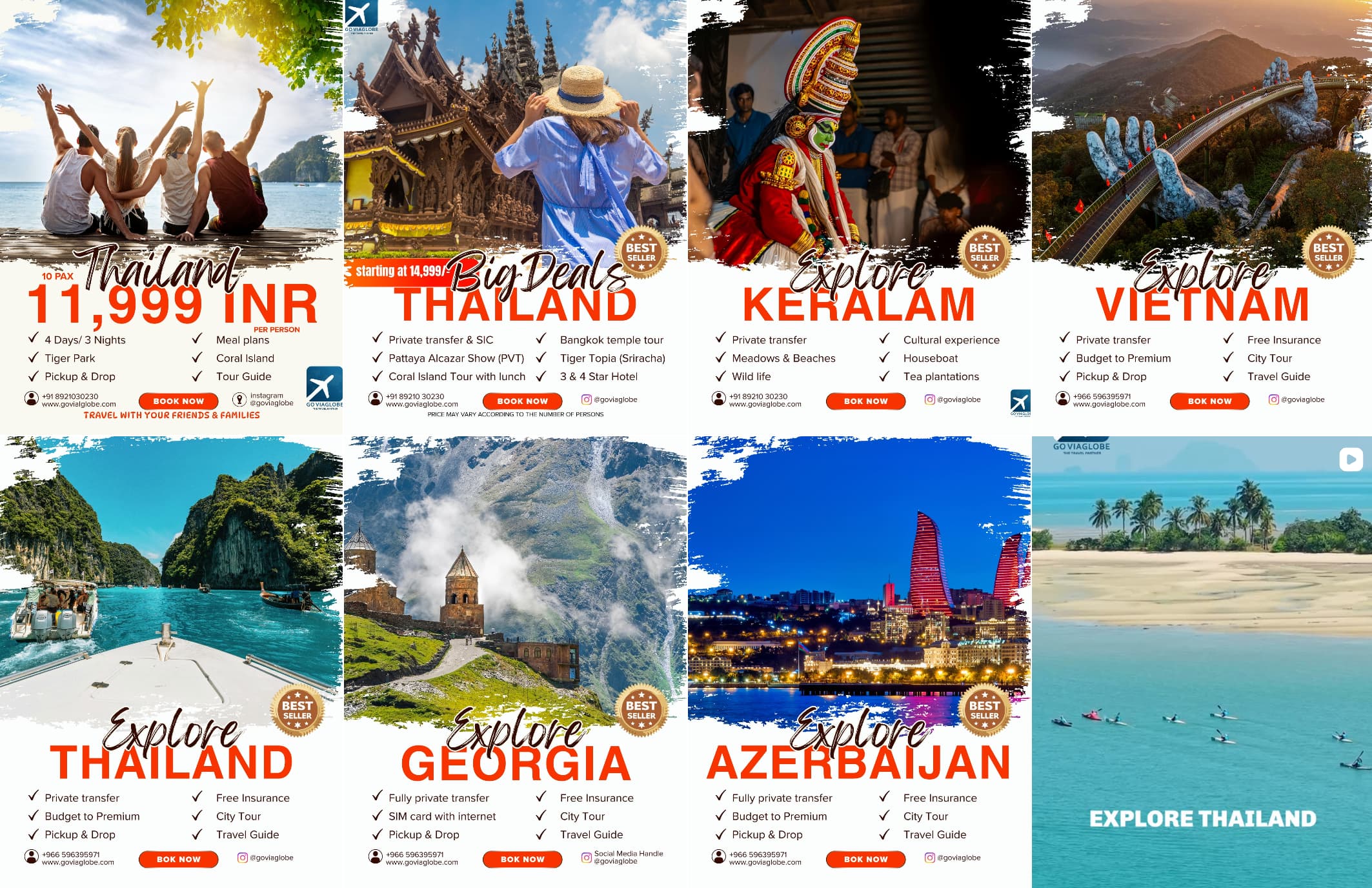 ഇന്ന് ഗോ വിയാഗ്ലോബ് അസർബെയ്ജാൻ, തായ്ലൻഡ്, ജോർജിയ, വിയറ്റ്നാം എന്നിങ്ങനെയുള്ള ഇന്റർനാഷണൽ പാക്കേജുകളും ഡൊമസ്റ്റിക്ക് പാക്കേജുകളും ,കേരളത്തിൽ മികച്ച ഓഫറുകളോട് കൂടി റിസോർട്ട് ബുക്കിംഗ് സർവ്വീസുകളും എല്ലാം ചെയ്തു നൽകുന്നു.കസ്റ്റമറുടെ സംതൃപ്തിയിൽ വിട്ടുവീഴ്ച ചെയ്യാതെ, താങ്ങാവുന്ന വിലയിൽ ഉയർന്ന നിലവാരമുള്ള യാത്രാനുഭവങ്ങൾ നൽകുക എന്നതാണ് കമ്പനിയുടെ മോട്ടീവ്.അഗ്ഗ്രസ്സീവ് മാർക്കറ്റിംഗിന് പകരം നല്ല സർവ്വീസ് നൽകി കിട്ടുന്ന മൗത്ത് പബ്ലിസിറ്റി ആണ് ടാർജറ്റ് ചെയ്തത്.അങ്ങനെ സംതൃപ്തരായ ഉപഭോക്താക്കൾ അവരുടെ ഏറ്റവും വലിയ പ്രൊമോട്ടർമാരായി മാറി.കസ്റ്റമർ സാറ്റിസ്ഫൈഡ് ആണ് എന്നതിന്റെ തെളിവാണ് ഓരോ റെഫറലുകളും.