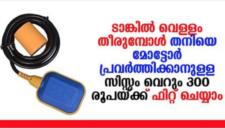 വാട്ടർ ടാങ്കിൽ വെള്ളം നിറക്കുക എന്നാൽ എപ്പഴും ഒരു പണിപ്പെട്ട കാര്യമാണ്.വെള്ളം തീർന്നു എന്നറിയുമ്പോൾ ആണ് നാം മോട്ടർ ഓണാക്കുക.അപ്പോൾ കറന്റ് ഇല്ലെങ്കിൽ പണി പാളി.അത് പോലെ വാട്ടർ ടാങ്ക് നിറയുമ്പോൾ വെള്ളം നിറഞ്ഞൊഴുകി നാം അറിയാതെ പോകാറുണ്ട്.ഈ പ്രശ്നങ്ങൾ ഒക്കെ പരിഹരിക്കാം വെറും 300 രൂപക്ക്.