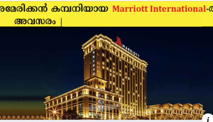 അമേരിക്കന് കമ്പനിയായ Marriott International-ല് അവസരങ്ങൾ