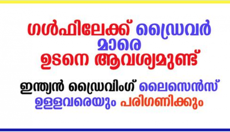 ഗൾഫിലേക്ക് ഡ്രൈവർ മാരെ ഉടനെ ആവശ്യമുണ്ട്