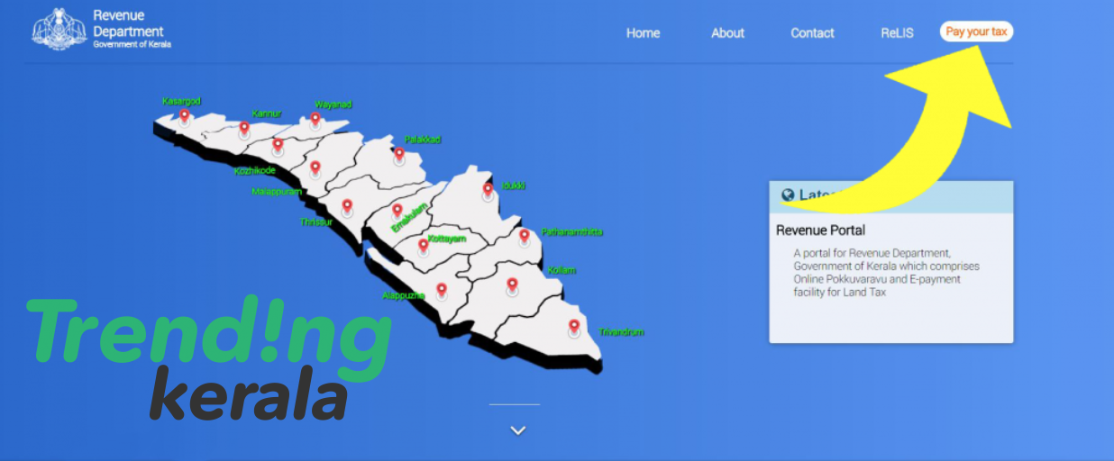 - അതിനായി ആദ്യം റെവന്യൂ ഡിപ്പാർമെൻറ് സൈറ്റ് ആയ http://www.revenue.kerala.gov.in/ സന്ദർശിക്കുക