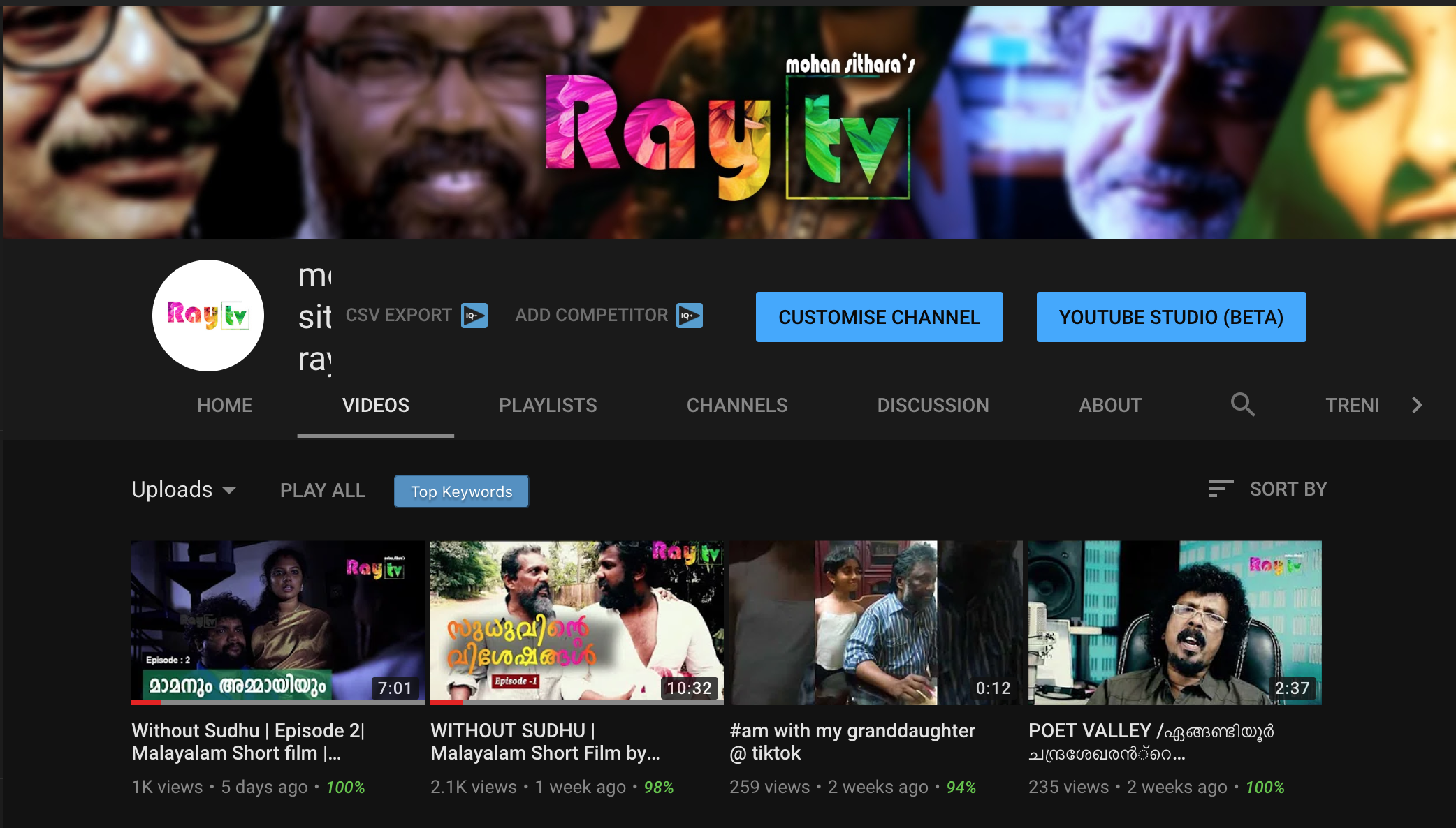 മ്യൂസിക് കമ്പോസർ ആയ മോഹൻ സിത്താരയുടെ യൂട്യൂബ് ചാനൽ ആയ Mohan Sithara’s Raytv വിനോദ പരിപാടിയാളുമായി മുന്നേറുന്നു.Mohan Sithara’s Raytv യിലൂടെ മനോഹര ഗാന വീഡിയോകളും,പ്രമുഖരുമായുള്ള ഫേസ് ടു ഫേസ് ഇന്റർവ്യൂ എന്നിവ കൂടാതെ ഷോട്ട് ഫിലിം കൂടി.വിത്ത് ഔട്ട് സുദു എന്ന് പേരിട്ടിരിക്കുന്ന ഷോട്ട് ഫിലിം ഓരോ പാർട്ട് ആയിട്ടാണ് Mohan Sithara’s Raytv യിലൂടെ എത്തുന്നത് .