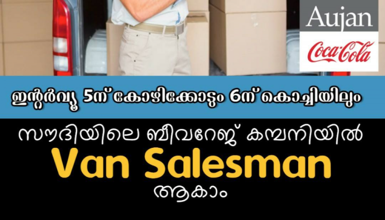 സൗദിയിലെ Aujan Coca-Cola ബീവറേജ് കമ്പനിയിലേക്ക് വാൻ സെയിൽസ്മാൻ പോസ്റ്റിലേക്ക് റിക്രൂട്ട്മെന്റ് നടക്കുന്നു.ബാംഗ്ലൂർ ,കൊച്ചി ,കോഴിക്കോട് എന്നിവിടങ്ങളിൽ ആണ് ഇന്റർവ്യൂ.Soundlines Consultancy ആണ് റിക്രുറ്റ്മെന്റ് നടത്തുന്നത്.കൂടുതൽ വിവരങ്ങൾ താഴെ നൽകുന്നു.