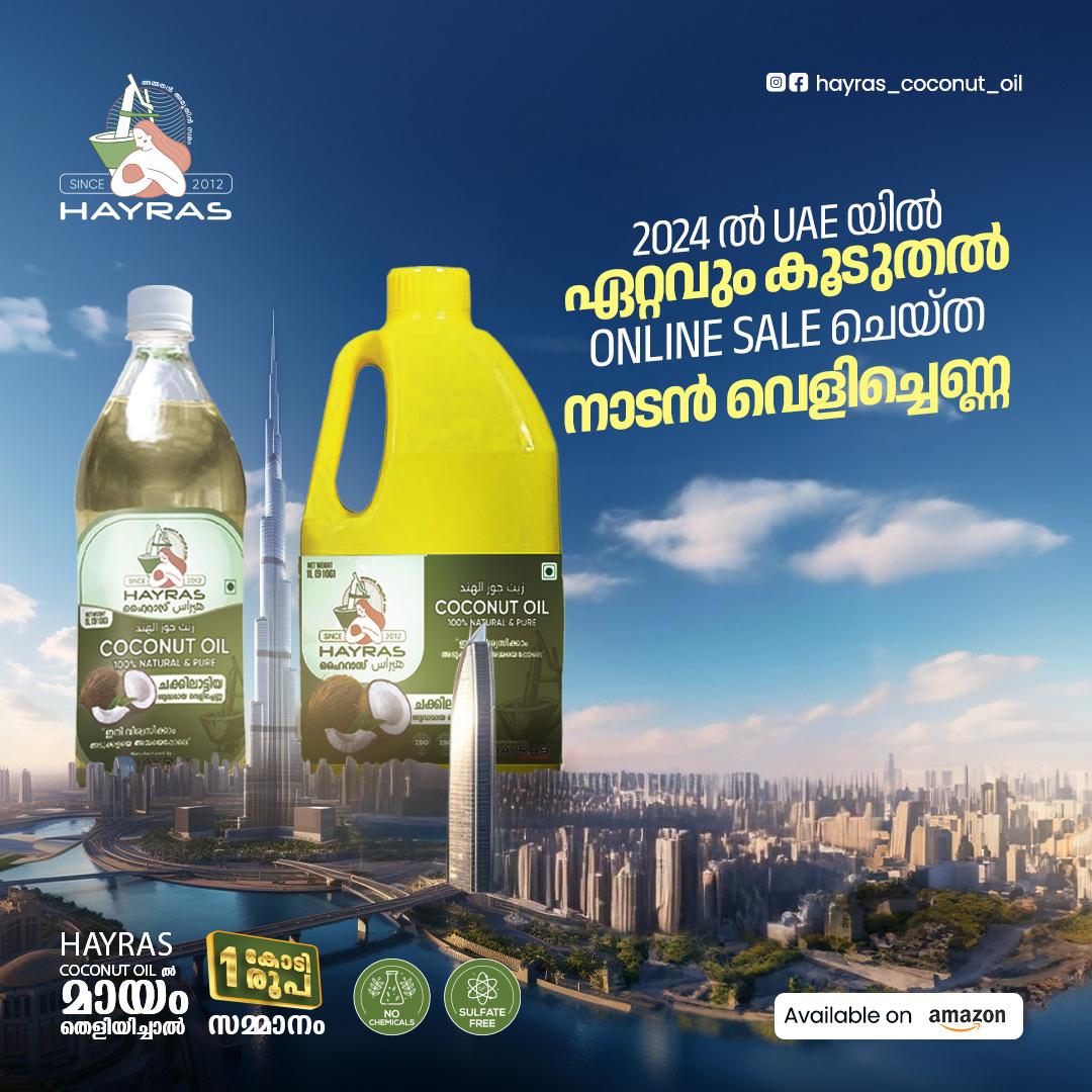 Raviz, Panoor, Calicut Chef, അടക്കം UAE മലയാളികൾ ഏറ്റവുമധികം നാടൻ ഭക്ഷണത്തിനായി ആശ്രയിക്കുന്ന എല്ലാ പ്രമുഖ പ്രീമിയം മലയാളി റെസ്റ്റോറന്റ് ചെയിനുകളിലെയും രുചിക്കൂട്ടിലെ പ്രധാന രഹസ്യം ഒരു തനിനാടൻ ചക്കിലാട്ടിയ വെളിച്ചെണ്ണയാണ്. നാട്ടിൽ നിന്ന് സ്വന്തമായി ഉല്പാദിപ്പിക്കുന്ന കൊപ്ര ചക്കിലാട്ടി, തനതുരീതിയിൽ അതിന്റെ ഗുണവും മണവും രുചിയും ഒന്നുംതന്നെ നഷ്ട്ടപ്പെടാതെ UAE യിലേക്ക് Manufacturers തന്നെ നേരിട്ടെത്തിക്കുന്ന വെളിച്ചെണ്ണയാണ് ഹൈറാസിന്റേത്. തങ്ങളുടെ വെളിച്ചെണ്ണയിൽ തരി പോലും മായം കലർന്നിട്ടില്ല എന്ന 100% കോൺഫിഡൻസിലാണ് 1% എങ്കിലും മായം തെളിയിച്ചാൽ 1 കോടി രൂപ സമ്മാനമെന്ന ഹൈറാസിന്റെ പരസ്യത്തിന്റെ tagline ഉം പിറന്നത്.