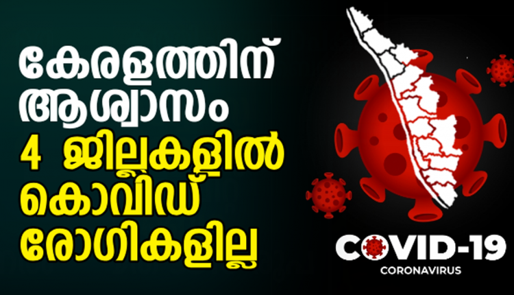 കേരളത്തിൽ കോവിഡ് രോഗികളില്ലാത്ത 4 ജില്ലകൾ
