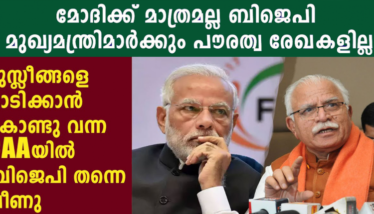 ബി.ജെ.പി നേതാവും ഹരിയാന മുഖ്യമന്ത്രിയും ആയ മനോഹര് ലാല് ഖട്ടാര്, സംസ്ഥാന കാബിനറ്റ് മന്ത്രിമാര്, ഗവര്ണര് എന്നിവരുടെ പൗരത്വം തെളിയിക്കുന്ന രേഖകള് സര്ക്കാറിന്റെ പക്കലില്ലെന്ന് വിവരാവകാശ രേഖയിലൂടെ മറുപടി.പാനിപ്പത്ത് ആസ്ഥാനമായി പ്രവർത്തിക്കുന്ന സന്നദ്ധ സംഘടന പ്രവർത്തകനായ വിപി കപൂർ ആണ് വിവരാവകാശ നിയമം ഉപയോഗിച്ചു ഹരിയാന മനോഹര് ലാല് ഖട്ടാര്,സംസ്ഥാന കാബിനറ്റ് മന്ത്രിമാര്,ഹരിയാന ഗവർണർ എന്നിവരുടെ പൗരത്വം സംബന്ധിച്ച ചോദ്യം ഉന്നയിച്ചത്.ഇത് സംബന്ധിച്ച രേഖകൾ ഒന്നും ലഭ്യമല്ല എന്നാണ് വിവരാവകാശ ചോദ്യത്തിന് ലഭിച്ച മറുപടി.ഇലക്ഷൻ കമ്മീഷനിൽ ഇത് സംബന്ധിച്ച രേഖകൾ ഉണ്ടായേക്കും എന്നും മറുപടിയിൽ പറയുന്നു.