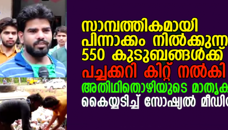 പാവപെട്ട 550 കുടുബങ്ങൾക്ക് പച്ചക്കറി കിറ്റ് നൽകി അതിഥി തൊഴിലാളി മാതൃക