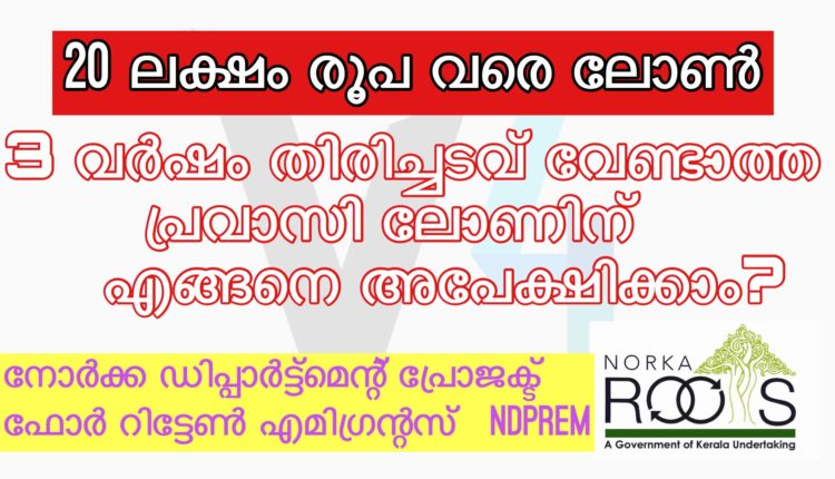 പ്രവാസികൾക്ക് 20 ലക്ഷം രൂപ വരെ ലോൺ ,3 ലക്ഷം സൗജന്യം