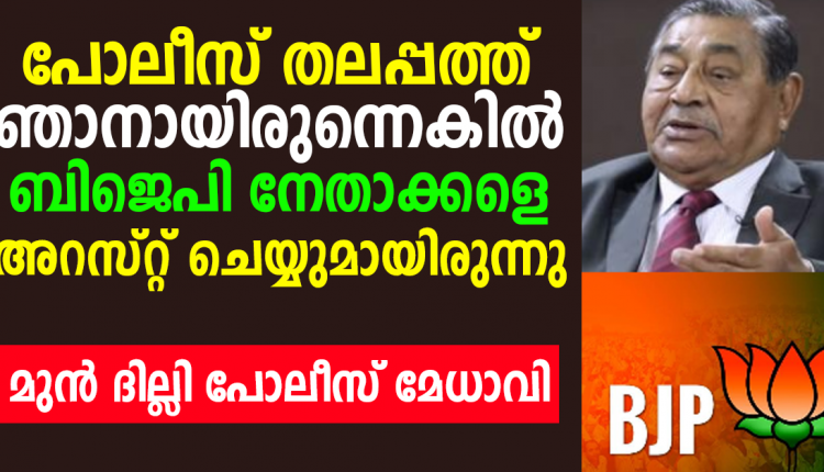 പോലീസ് തലപ്പത്തു ഞാൻ ആയിരുന്നെങ്കിൽ വിദ്വേഷ പരാമർശം നടത്തിയതിനു കപിൽ മിശ്രയും അനുരാഗ് താക്കൂറും അടങ്ങുന്ന ബിജെപി നേതാക്കളെ അറസ്റ്റ് ചെയ്തേനെ എന്ന് മുൻ ദില്ലി പോലീസ് മേധാവി പറഞ്ഞു.