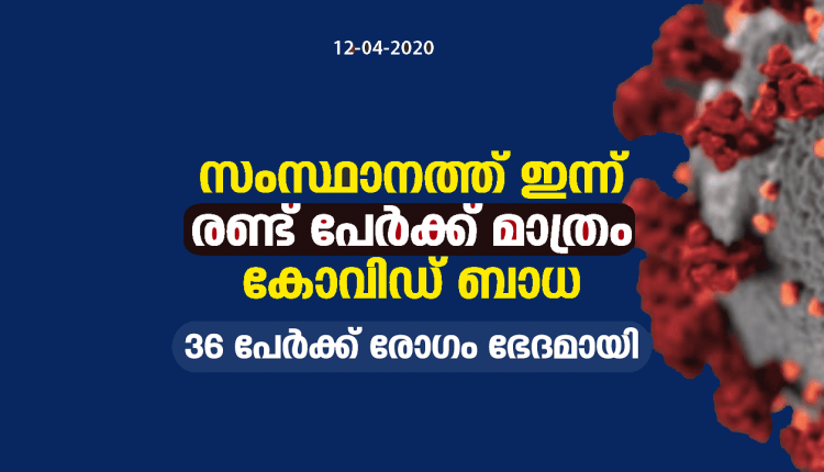 കേരളത്തിൽ ഇന്ന് രണ്ട് പേര്ക്ക് മാത്രം കോവിഡ്,36 പേരുടെ രോഗം മാറി
