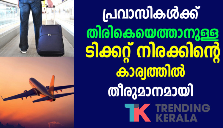 പ്രവാസികൾക്ക് തിരികെയെത്താനുള്ള ടിക്കറ്റ് നിരക്കിന്റെ കാര്യത്തിൽ തീരുമാനമായി