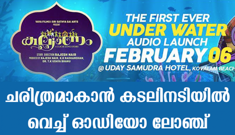 ശ്രാവൺ മുകേഷ്, വർഷ ബൊല്ലമ്മ എന്നിവർ പ്രധാന കഥാപാത്രത്തെ അവതരിപ്പിക്കുന്ന ‘കല്ല്യാണം‘ എന്ന സിനിമ അതിന്റെ ഓഡിയോ പ്രകാശന ചടങ്ങിലൂടെ ചരിത്രം സൃഷ്ടിക്കാൻ പോവുകയാണ്. ലോകത്ത് ആദ്യമായി ഒരു സിനിമയുടെ ഓഡിയോ പ്രകാശന ചടങ്ങ് കടലിനടിയിൽ വച്ച് സംഭവിക്കാൻ പോകുന്നു എന്നതാണ് പ്രത്യേകത! അത്തരത്തിലൊരു വ്യത്യസ്തമായ ശ്രമം മാത്രമല്ല ടീം കല്ല്യാണം ലക്ഷ്യമിടുന്നത്. അല്ലാതെ വേറെന്താ?