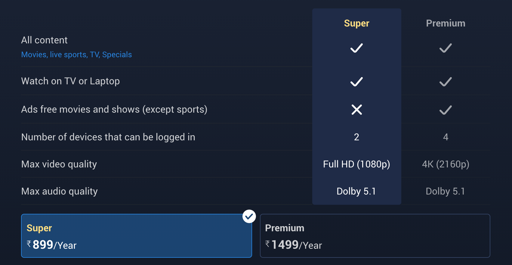 ഇതാണ് ഹോട്സ്റ്റാർ ന്റെ പ്ലാനുകൾ .ഇതിലെ ഏതേലും പ്ലാനുകൾ വാങ്ങാം.അല്ലെങ്കിൽ ജിയോ എയർടെൽ ഉപയോഗിക്കുന്നവർ ആണെങ്കിൽ സ്പെഷ്യൽ പാക്കേജ് റീച്ചാജ് ചെയ്താലും ഹോട്സ്റ്റാർ VIP സബ്സ്ക്രിപ്ഷൻ ഫ്രീ ആയി ലഭിക്കും.